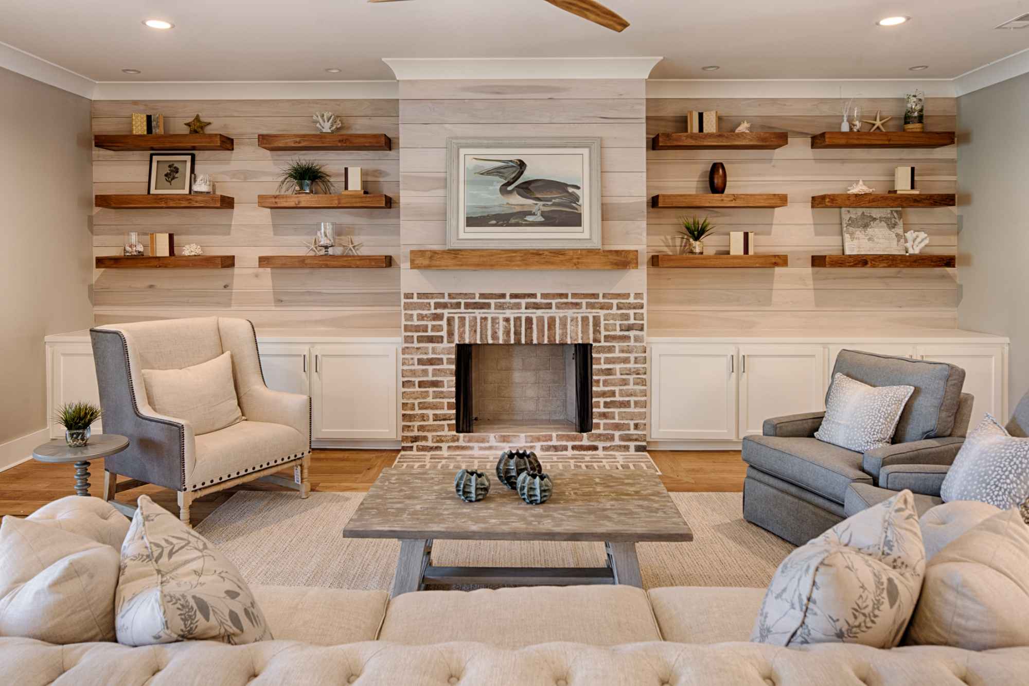Great room with brick fireplace