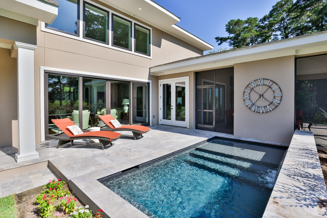 travertine deck with cocktail pool
