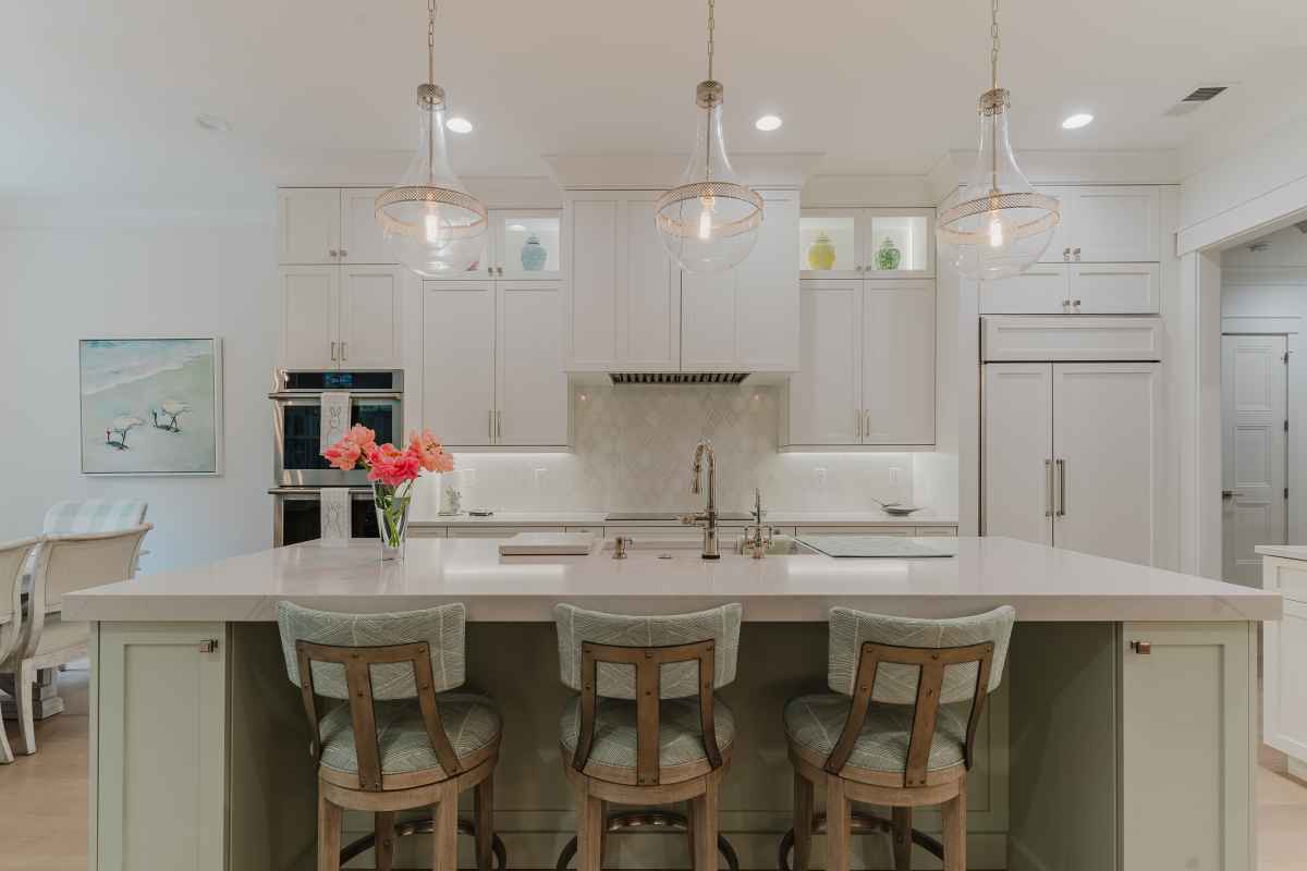 bright open kitchen with walk in pantry